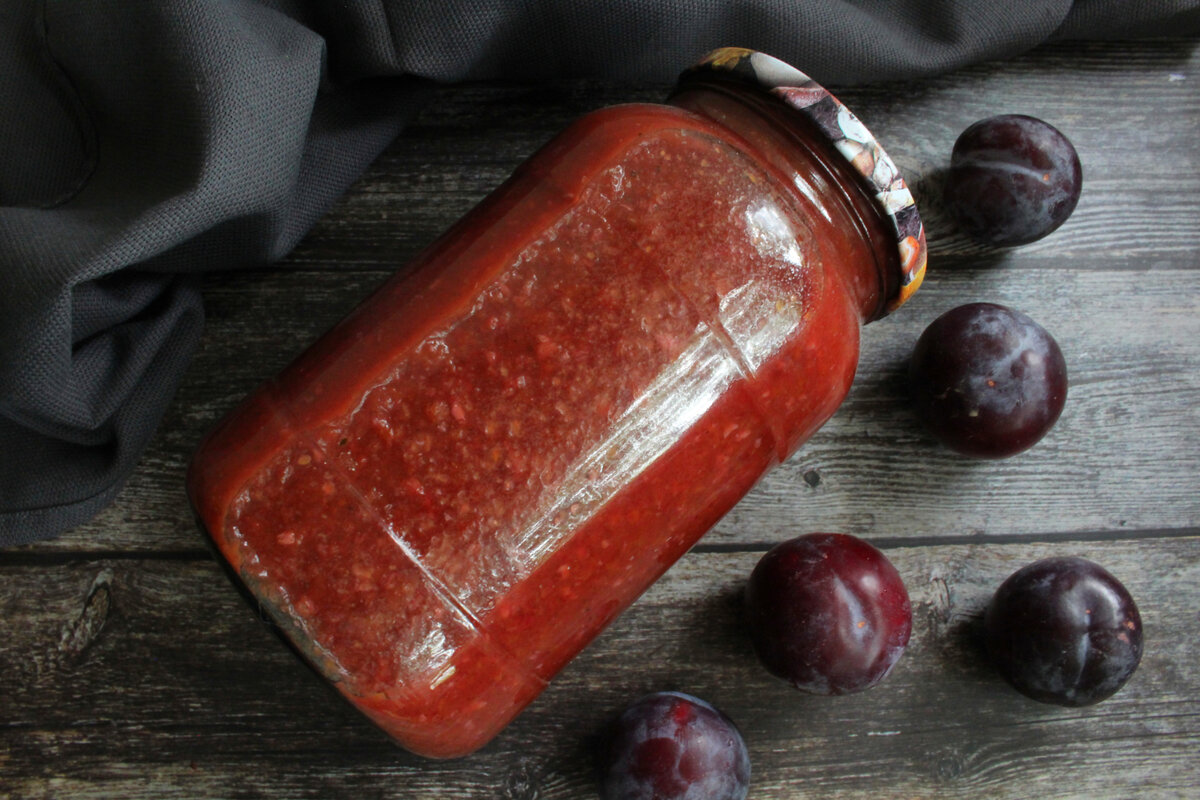 Такая заготовка понравится многим, если вы готовите разнообразные соусы на зиму, то попробуйте приготовить и пару баночек по этому рецепту. Соус получается вкусный и ароматный, его можно сделать острее или совсем без острого перца, можно добавить свои любимые пряности, отрегулировать соль по вкусу. Если вам попались кислые и твердые сливы или твердые пресные помидоры, то из них как раз и надо готовить такой соус. Двойное дело и неудачные продукты переработаете и вкусный соус получите. Ингредиенты: Сливы - 1 кг. Помидоры - 0.5 кг. Чеснок - 3 головки Перцы острые - 1-3 шт. Сахар - 2 ст.л. Соль - 1 ст.л. Хмели-сунели - 1 ч.л. Кориандр молотый - 0.5 ч.л. Перец черный молотый - 0.5 ч.л. Сливы и помидоры промоем, из слив уберем косточки. Перекручиваем помидоры через мясорубку. Сливы, чеснок и острые перцы тоже перекручиваем через мясорубку. Можно измельчить ингредиенты в блендере. Добавим в соус кориандр, черный перец, сахар и соль. Если вы любите тмин, то его тоже можно добавить по вкусу. П