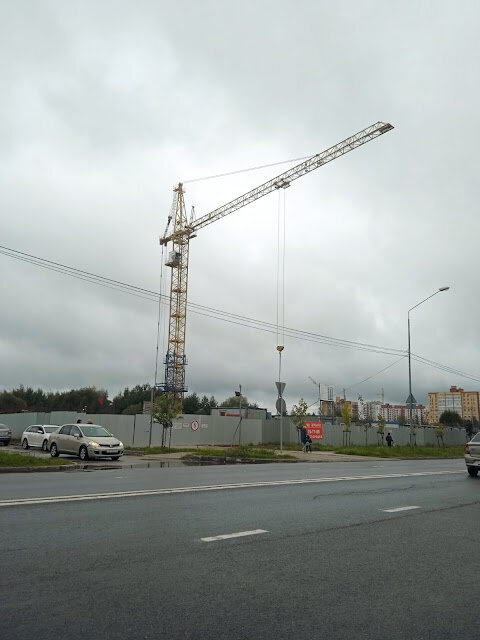 Калуга, улица Серафима Туликова. Фото сделано сегодня. На фото видно, как мама ведет малыша мимо рекламного баннера в опасной зоне действия стрелы (пока ещё не введенного в эксплуатацию) башенного крана. Судя по фото, стрела башенного крана выходит за пределы ограждения стройплощадки. Это опасная зона! В опасную зону в нарушение правил безопасной эксплуатации грузоподъемных механизмов не ограничен доступ даже пешеходов за границами стройплощадки. Лица, ответственные за производство работ на стройплощадке и лица, ответственные за безопасное перемещение грузов грузоподъемными механизмами, допускают нарушения установленных правил.
