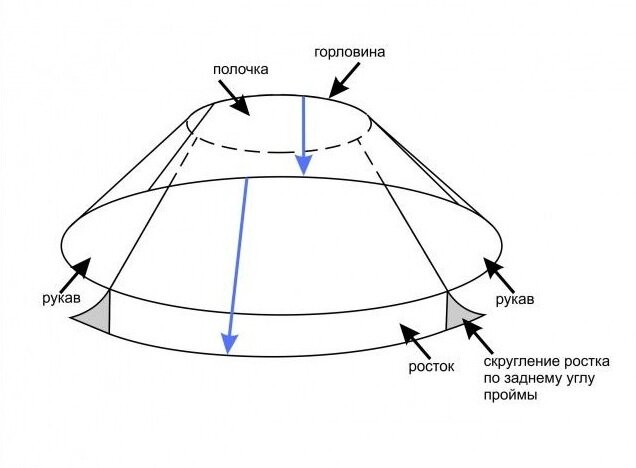 Не будет ли удлинение спинки "заламывать" рукава. Лично я вяжу росток всегда, даже в детских изделиях. Причем углубление можно делать не только спереди, но и по спинке. Предлагаю связать популярный изогнутый азиатский росток, одновременно с подрезом, по анологии с вязанием спицами. Довязав кокетку, приступаем к вывязыванию ростка. 1)Вяжете одну полочку. Пропускаете рукав.