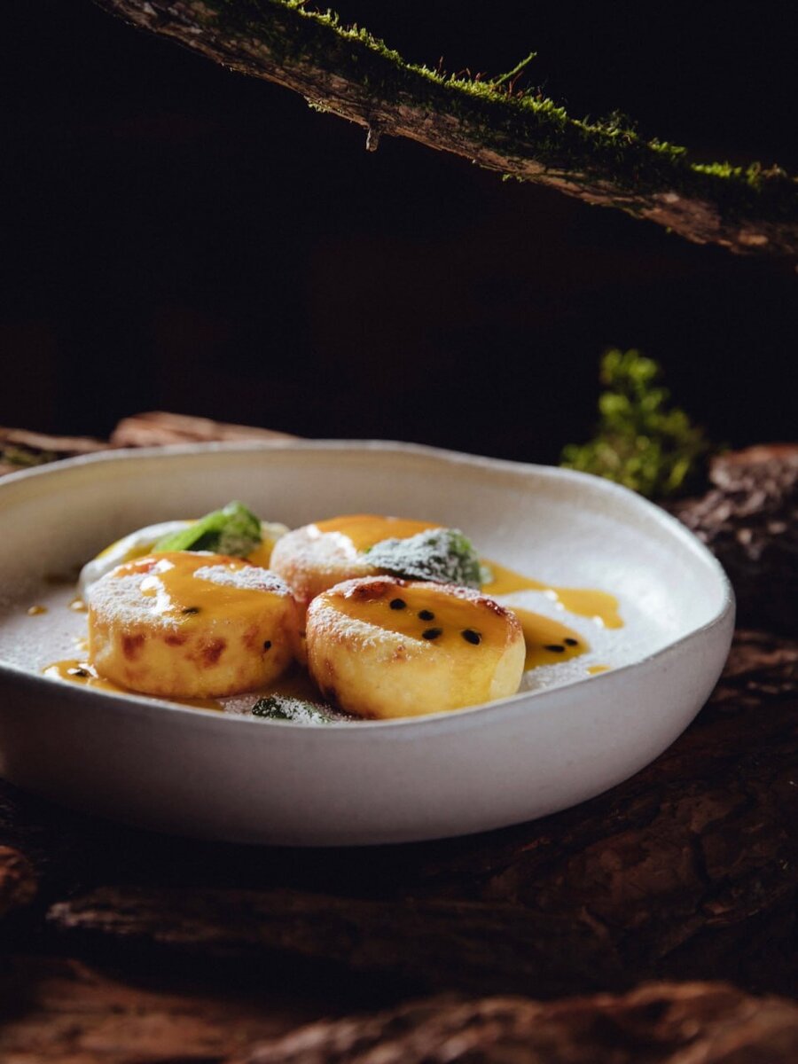 Классические сырники из воздушного рассыпчатого творога с соусом на основе манго и маракуйи — неизменный хит утреннего меню.