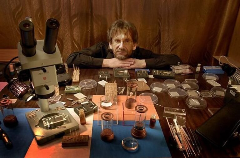 Работавший более тридцати лет на производстве токарь решил, как герой Лескова, «подковать» блоху. Золотыми подковами, разумеется. Как ему это удалось, просто не укладывается в голове. Ведь только одна блошиная подковка весит 0,00000004419 граммов, что означает: из одного грамма золота можно изготовить более 22-х с половиной миллионов таких подковок. А гвоздики? На каждую подкову - три гвоздя с диаметром шляпки в пять микрон! В природе не существовало инструментов для такой работы, и всё это Николай Сергеевич сделал сам, под микроскопом. В своё время на вопрос одного из авторов: «Как вам это удалось?» - Мастер ответил: «Огромное желание было. У всех моих «конкурентов» в ми