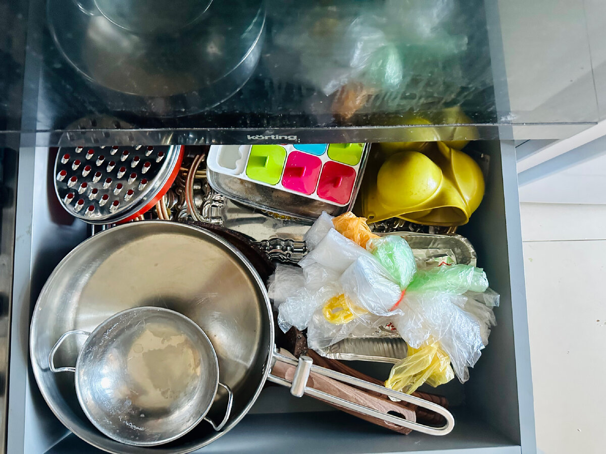 Навела порядок в кухонном ящике под духовкой