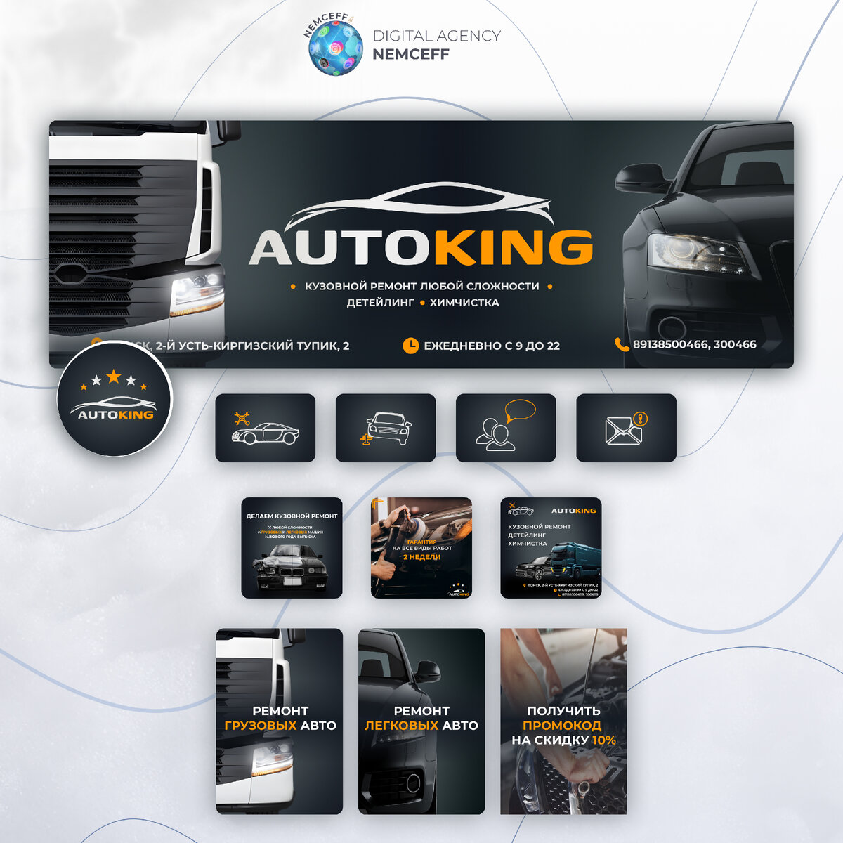 Мы решили сделать акцент на высоком качестве и профессионализме их работы. Как основу для обложки, было использовано фото с расположенными по краям автомобилями, чтобы акцентировать внимание на починке кузова. Дизайн обложки придавал ей стильный и современный вид, а также отображал основную деятельность организации.