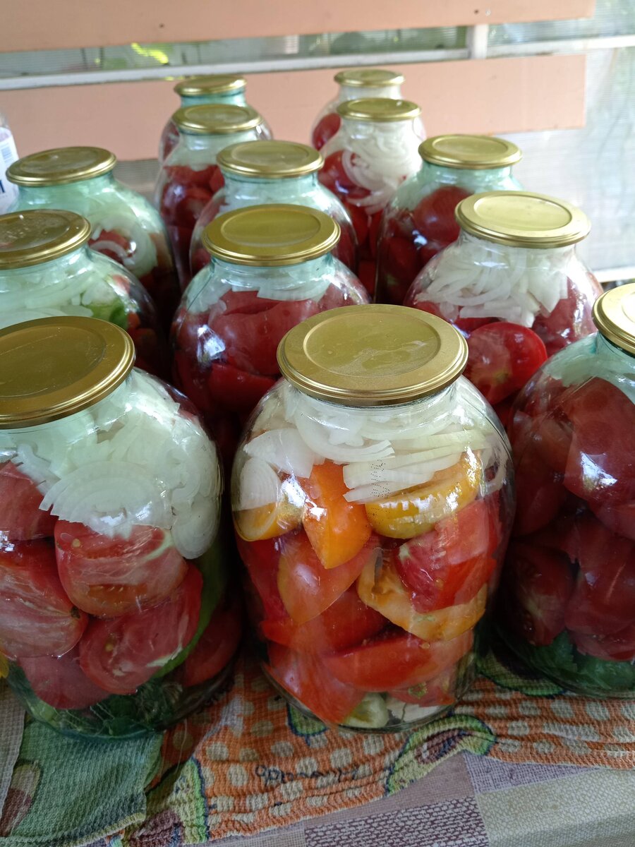 Соседи, привет!!!! Завести свой канал, не означает добросовестно его вести. От всего сердца скажу я вам. Начинала весело, задорно, но с наступлением «горячей» дачной поры времени на это оставалось все меньше и меньше, а сил и вовсе не хватало. Вечером быстренько под душ и в кроватку. Рано утром подъем, планерка, и в бой с урожаем. И такая дребень каждый день. Урожай у нас вывалил в этом году отличный, причем по всем культурам. Не остались в стороне и помидоры. В запале свое страсти к написанию статей, я в самом начале своей миникарьеры блогера написала статью -«Даешь помидорный год». Ну, собственно, и дали, да так, что собрав шесть ведер помидор, в очередной раз решила я всплакнуть, потому как, что с ними делать слабо уже себе представляла. Были закрыты помидоры в банках по различным рецептам. Помидоры соленые в кастрюле. Томата сварила литров сто, наверное. Сушеные помидоры, моя страсть, конечно были заготовлены. Кстати, хочу поделиться рецептом чудесного Лечо. Очень вкусно!!! Т