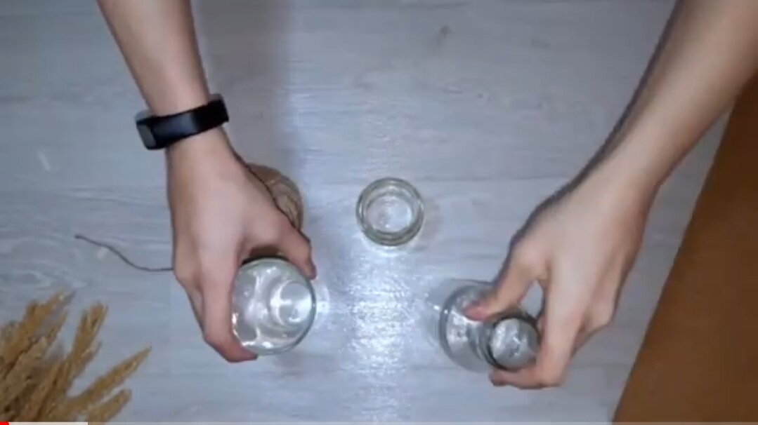 Здравствуйте, друзья. Сегодня хочу поделиться, что я сделала из стеклянной банки, бутылки и стакана. 🥰 Взяла баночку от детского питания.🤗 Взяла пробковую салфетку. Приклеила на середину баночки. И обклеила крышку. Так же приклеила джутовую верёвку чуть ниже резьбы. Вот такая боночка получилась. 🤗 Далее взяла стеклянный стакан. И немного шпажек. и так же джутовая нить. Обклеиваю джутом в верху и внизу. Далее приклеиваю шпажки по кругу. Как на фото 🤗👇 По кругу обклеиваю джутовой косичкой, чтобы скрыть острые шпажки. Вот что получилось. Далее беру бутылку и так же джутовую нить. Вот что получается. Теперь беру кусочек пробковой салфетки, приклеиваю по верху бутылки. Так же решила по кругу приклеить джутовую косичку. Вот такая вот бутылочка получилась 🤗 Вот что я сделала из ненужных бутылок и банок. 🤗Как вам такие идеи Спасибо, что зашли ко мне. 🤗Спасибо, что уделили время. Подписывайтесь на канал.🤗👍🔥