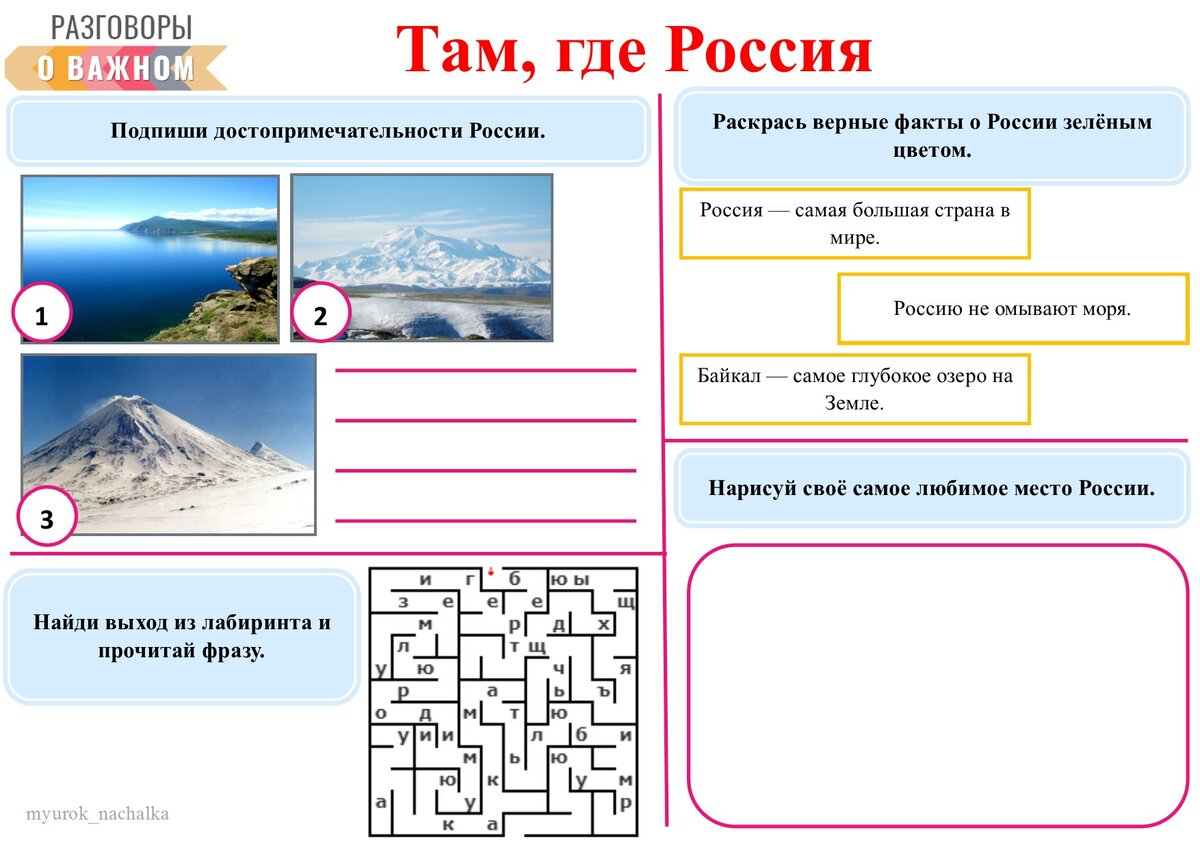 Коллеги, здравствуйте! Размещаю рабочий лист для предстоящего занятия цикла "Разговоры о важном" - Там, где Россия. Рабочий лист разработан для учеников начальной школы.