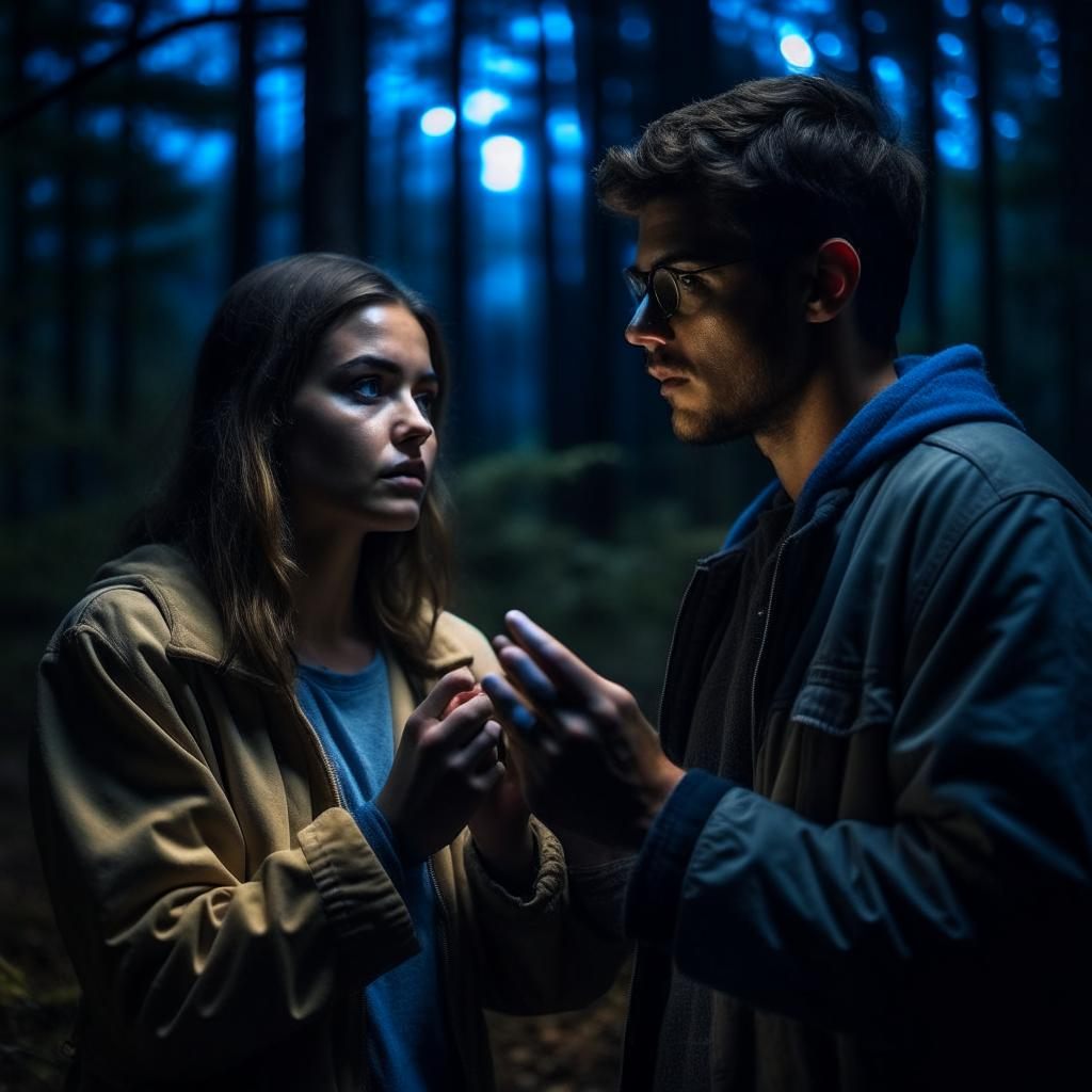 Тихая и темная ночь окутывала маленький загородный домик, стоящий у самого леса. Деревья, тени которых отражались на стенах, казались живыми, перемещающимися по комнатам. Внутри дома паниковали два молодых влюбленных – Эмили и Майкл. Они слышали странные звуки из леса, и каждая его веточка, которая шелестела под ветром, заставляла сердца ребят биться сильнее.