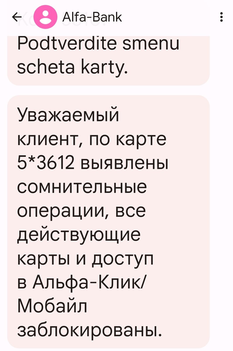 но они объяснили, что якобы мне только что звонили из службы безопасности банка, но я не взяла трубку. В реальности дозвона не было, ни кто звонил, ничего. Просто пришло смс, что все теперь заблокировано. Ну, здорово. Без доступа в приложение и не ясно, как этот кредит платить.