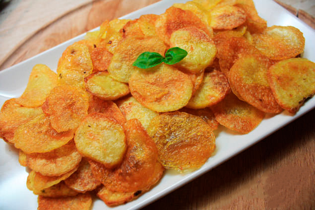 Это простой рецепт домашних запеченных картофельных чипсов, более здоровый вариант традиционных жареных картофельных чипсов. Наверное, одна из лучших закусок без чувства вины. Выложите ломтики картофеля в один слой и запекайте до хрустящей корочки и золотистого цвета. ВРЕМЯ ПОДГОТОВКИ: 15 минут ВРЕМЯ ПРИГОТОВЛЕНИЯ: 20 минут ОБЩЕЕ ВРЕМЯ: 35 минут Ингредиенты Инструкции_____________________________________________ Питание___________________________________________________ Калорийность: 812 ккал.