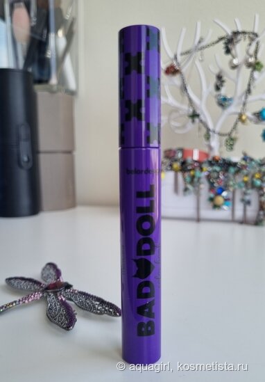 Опыт использования цветных тушей для ресниц у меня совсем небольшой. Как-то раз поддалась на уговоры визажиста YSL и купила тёмно-синюю Baby Doll, но на ресницах она выглядела почти чёрной. Белорусская тушь Belor Design явно вдохновилась своим люксовым прототипом в названии, давайте сравнивать содержимое. Упаковка стандартная, вес продукта 9,3 грамма, срок годности 30 месяцев, сделано в Беларуси. Щёточка силиконовая, достаточно упругая и не изгибается в процессе макияжа. Я не большой фанат силиконовых щёток, но эта мне подошла — не царапает веко и хорошо прокрашивает ресницы. Тушь заявлена объемной, но она оказалась универсальной. Помимо объёма есть и удлинение, и разделение ресниц. Текстура туши кремовая, первое время достаточно жидкая. Пигментация отличная, для яркого результата достаточно одного слоя. Я думала, что для передачи цвета лучше наносить цветную тушь на слой чёрной, но опытным путём выяснила, что это не так. Оттенок сине-фиолетовый, уходит то в одну, то в другую сторону,