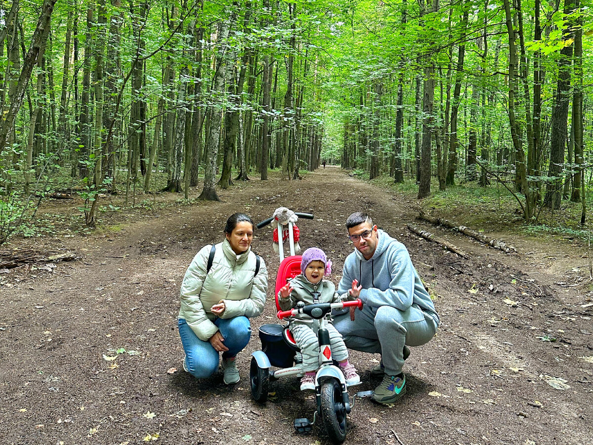 Сегодня ходили прогуляться в Тимирязевский парк, он у нас возле дома, в 10 минутах ходьбы. Для меня это не парк, а целый лес, здесь нет асфальтированных дорожек, скамеек или что там еще в парках. Но это с нашей стороны, со стороны района Коптево есть скамейки, беседки, пруд, детская площадка. В парк мы пошли обкатать первый велосипед дочки, мы его опробовали еще вчера вечером, но недолго. Начну с самого начала, как дочка отреагировала на наше приобретение дома. Алине в конце месяца исполнится два года, до этого у нее не было велосипеда или самоката. Я показала ей фото и спросила: «Хочешь такой велосипед?», она ответила утвердительно. Я сказала ей, что папа купит пока ты будешь спать. Как раз на дневной сон Андрей съездил забрал его, мы купили на Авито за 2000 рублей, считаю, что за такой велосипед отличная цена. Он не новый, но не убитый, после одного ребенка. Некоторые запчасти вообще не использовались: такие как сумка, козырек и обод. Последние два и нам уже ненужны. Сам велосипед ра