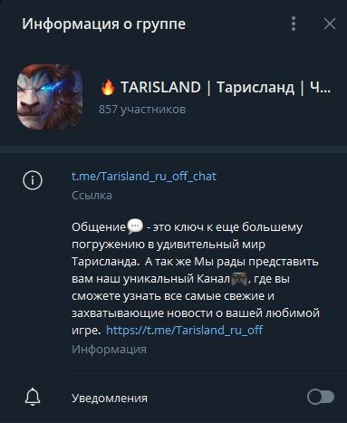 В нашем мире, где технологии все больше влияют на нашу повседневную жизнь, виртуальные миры становятся все более привлекательными и захватывающими. Однако, чтобы насладиться игровым опытом в полной мере, вам необходимо не только погрузиться в саму игру, но и окунуться в увлекательное сообщество, где вы сможете делиться своими приключениями, обсуждать стратегии и узнавать самые актуальные новости. Именно такую атмосферу мы предлагаем в нашем увлекательном и интерактивном сообществе, посвященном игре "Тарисланд", расположенном в мессенджере Telegram. "Тарисланд": Открой для себя новый мир приключений "Тарисланд" - это захватывающая многопользовательская онлайн-ролевая игра, которая позволяет вам воплотить свои фантазии и стать частью уникального виртуального мира. Но что делает эту игру по-настоящему уникальной? Это наше сообщество! Активное общение и обмен опытом Мы гордимся тем, что наше сообщество "Тарисланд" в Telegram - это место, где вы найдете активное и дружелюбное общение с еди