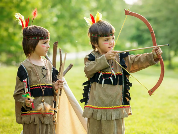 — Мы тут, папа! Мы тут в индейцев играем. Всю охоту нам распугаешь!