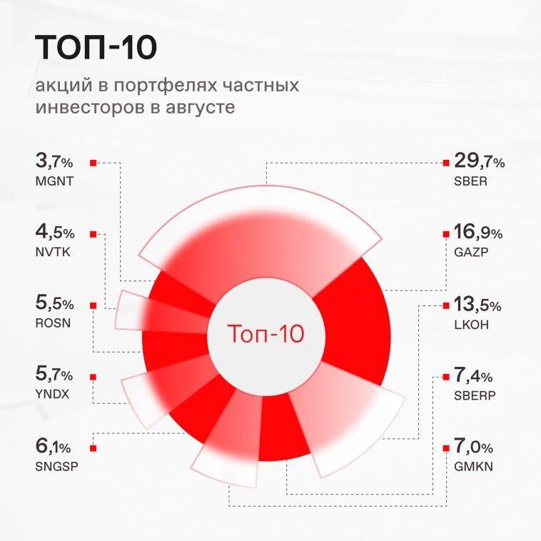 Как выглядит портфель акций РФ у среднего инвестора на Мосбирже («народный портфель») по итогам августа: