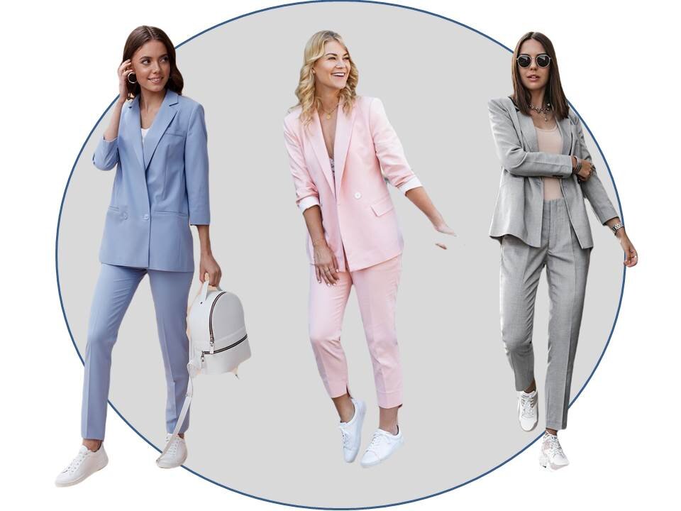 Поэтому советы стилистов о правилах, которые необходимо соблюдать, составляя это сочетание, уже можно считать неактуальными. Сейчас много обуви, которая сможет заменить в этом сочетании белые кроссовки и при этом не понизить статус делового костюма.