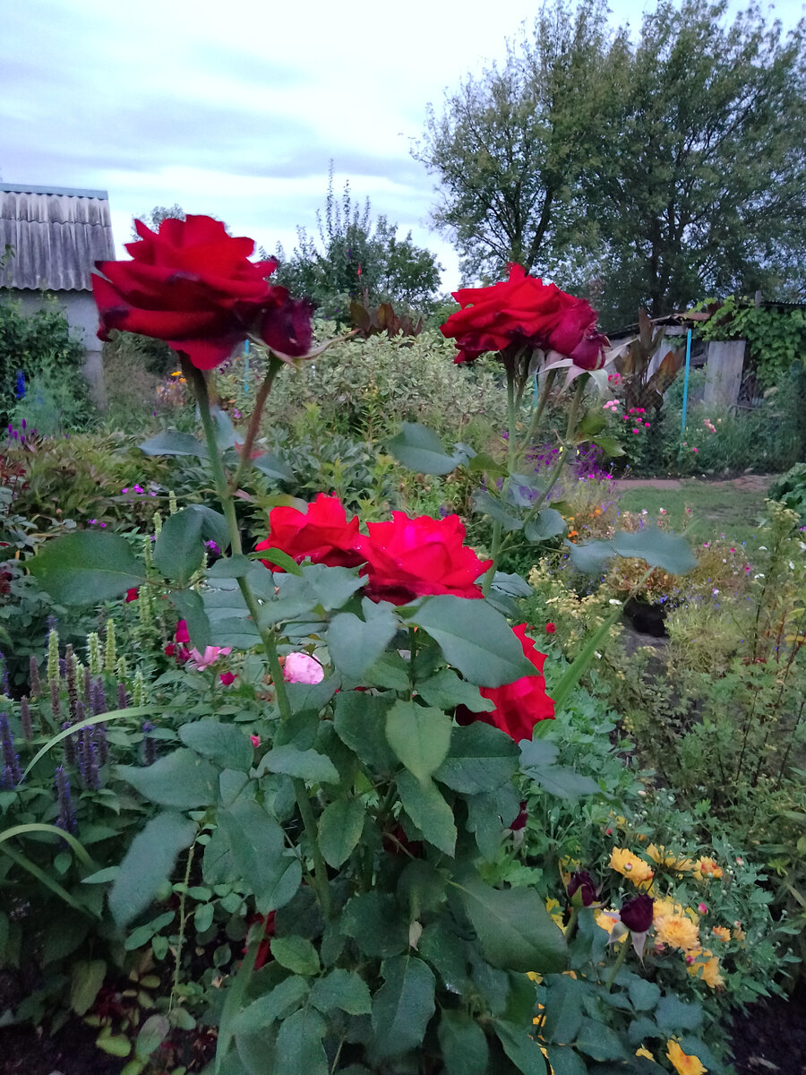Во всём чувствуется осень, похолодало и очень резко. Черноземье попало в какой то холодный мешок. Небо хмурое, но солнышко ещё старается, нет, нет, да и выглянет. Ветер бушует третий день и такой ледяной, просто б-ррр. Пересадками второй день не занимаюсь, вчера кетчуп, сегодня еда. Потом прикрутили с мужем карнизы над новыми окнами и просто погуляла по саду и вас приглашаю. Сад ещё радует, но красок мало. А вот Розе Бургунд такая погода видимо нравится . А вот книжки решил ещё немного поцвести и выдал один цветок, я его сажала весной. Гаура ещё колосится, остались единичные цветы. Гибискумы из семян подросли, вот только не знаю, можно ли сейчас их пересадить на постоянное место. Базилик лимонный, надеюсь опять собрать семена. Шалфей серебристый так и не зацвёл. Что то взошло и не в одном месте, теперь не знаю. Просо смотрит в пасмурное небо и наверное думает о солнышке. Роза Пинк Свани набирает обороты. У ваточника листья желтеют, а он решил поцвести ещё раз. Лохма