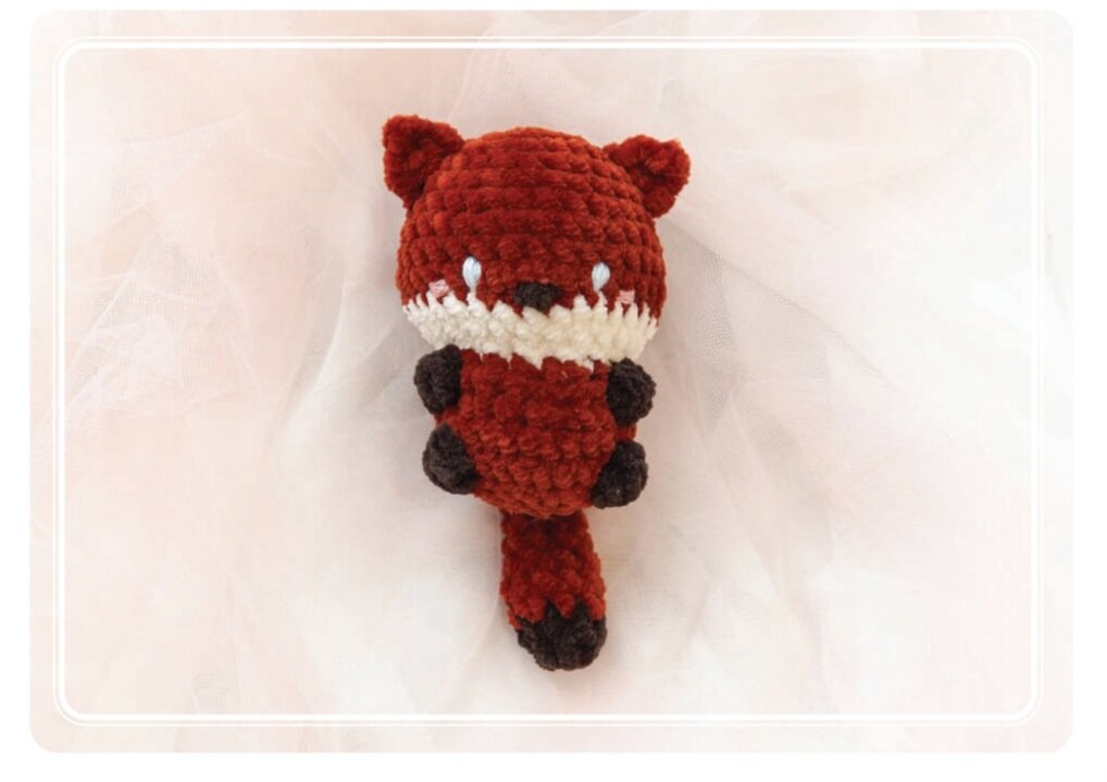 Собираем коллекцию малышей из плюшевой пряжи: Перевод: Вязальные приключения Условные обозначения: КА - кольцо амигуруми ВП - воздушная петля СБН - столбик без накида ССН - столбик с накидом СС- соединительный столбик УБ - убавка ПР - прибавка Материалы: Готовый размер - 10 см Хвост Начинаем с темно-коричневой пряжи. Вяжем по спирали. Ряд 1: 6 сбн в КА [6] 2 ряд: (2 сбн, 1 приб) * повторить 2 раза [8] Сменить нить на красный (оранжевый). 3 ряд: (3 сбн, 1 приб) * повторить 2 раза [10] 4 ряд: 10 сбн [10] 5 ряд: (3 сбн, 1 уб) * повторить 2 раза [8] 6 ряд: 8 сбн [8] 7 ряд: (2 сбн, 1 уб) * повторить 2 раза [6] 8-й ряд: 6 сбн [6] Сс, не закрывать, хвост не набивать. Голова и Тело Начинаем с красной пряжи. Вяжем по спирали. Ряд 1: 8 сбн в КА [8] 2 ряд: 8 приб [16] 3 ряд: (1 сбн, 1 приб) * повторить 8 раз [24] 4 ряд – 5-й ряд: 24 СБН [24] 6 ряд: (3 сбн, 1 приб) * повторить 6 раз [30] 7-й ряд – 8-й ряд, сбн [30] 9 ряд: 3 сбн, 2 пр, 5 сбн, 3 пр, 5 сбн, 2 пр, 10 сбн [37] Сменить пряжу на кремов