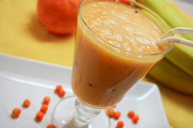 Этот смузи для завтрака состоит из банана, апельсина и ягод облепихи, который превращается в вкусный и полезный бодрящий напиток для завтрака. Я очень рекомендую этот коктейль на завтрак или даже в течение дня в качестве здорового перекуса. Смузи действительно ароматный и доставляет удовольствие вашим вкусовым рецепторам. ПОРЦИИ: 2 порции ВРЕМЯ ПОДГОТОВКИ: 10 минут ОБЩЕЕ ВРЕМЯ: 10 минут Ингредиенты Инструкции Питание Порция: 1 г