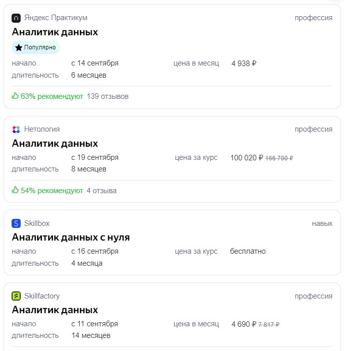Пришла мне в голову идея: "Коля, ну ты же достиг максимума в своем контенте, за контент не заплатят миллионы" и пошел Коля с бокалом вина в мир новых технологий. "Я не математик, но IT мне нравится" - ну куда я с этим пойду, конечно же в что-то смежно, важное, но не такое сложное, как программирование. Я удивился, но Яндексе сейчас собирает все курсы воедино и выдает все в одном месте. - в выдаче. Видите бесплатный вариант, каким вижу его я? Да, Skillbox расщедрился... нет. Это просто ошибка Яндекса, другая ошибка пошла уже за самим Skillbox'ом, они собирают данные без ведома участника. Т.е. без отправки заявки они уже знают о вас хоть не много и начинают атаку. Это неприятно, но терпимо. В конце концов, вы вправе послать их и будете правы. "Я не математик, но IT мне нравится" И тут я наткнулся на тест будущей профессии. Сделал я это в поисках уровня сложности. Вы и сами можете пройти этот тест, но лучше на свежую голову, в тишине и без бокала вина в руке. - ну это просто рекомендация.