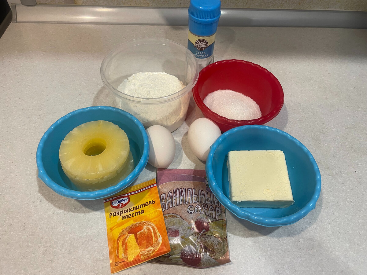 Эта наивкуснейшая домашняя выпечка не отнимет у вас много времени. Вас порадует приятная тропическая нотка во вкусе и сочность этого пирога. Побежали на кухню. Список продуктов: 1. Муку смешала с разрыхлителем и солью, затем просеяла. 2. Ананасы достала из банки и просушила, чтобы в них было меньше жидкости. Часть ананасов нарезала на кусочки, остальные пойдут на верх пирога. 3. Мягкое сливочное масло взбила с ванильным сахаром и обычным сахаром. 4. Продолжая взбивать, по одному добавила яйца. 5. Всыпала муку и тщательно перемешала, чтобы не было комочков. 6. Форму смазала сливочным маслом, выложила половину теста. 7. На тесто разложила нарезанные ананасы. 8. Сверху выложила вторую половину теста и разровняла. 9. Остальные ананасы разложила поверх теста. 10. Духовку разогрела до 180 градусов и выпекала пирог до золотистого цвета примерно 40 минут. Затем полностью остудила. Пирог с консервированными ананасами готов. Он очень ароматный. Ваша семья будет довольна такой вкусняшко