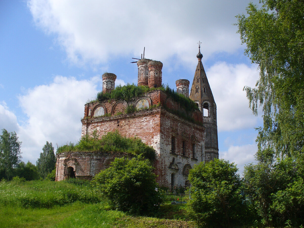 Всем привет. В этой статье пойдет речь о храме, который является одним из самых доступных, в плане посещения. Он находится буквально в 2 км. от Нерехты в живом селе, куда ведет асфальтовая дорога. Храм в селе один, но статью я назвал "Две сестры". Не буду держать интригу. Дело в том, что об этом храме специалисты пишут, что это характерная для своего времени и региона сельская приходская церковь. Более того, по композиции и декору, она очень похожа с храмом Казанской иконы Пресвятой Богородицы, который расположен в соседнем, ныне заброшенном селе Княгинино. Об это храме я писал здесь: