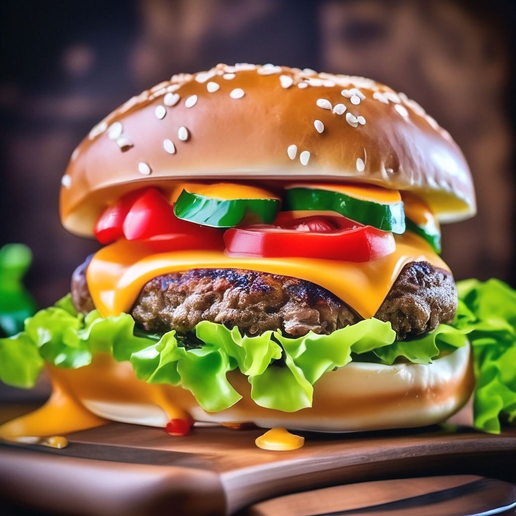Бургер с говяжей котлетой - это одно из самых популярных блюд в мире фаст-фуда. Он представляет собой большую круглую булочку, наполненную сочной котлетой из говядины, сыром, овощами и соусом.