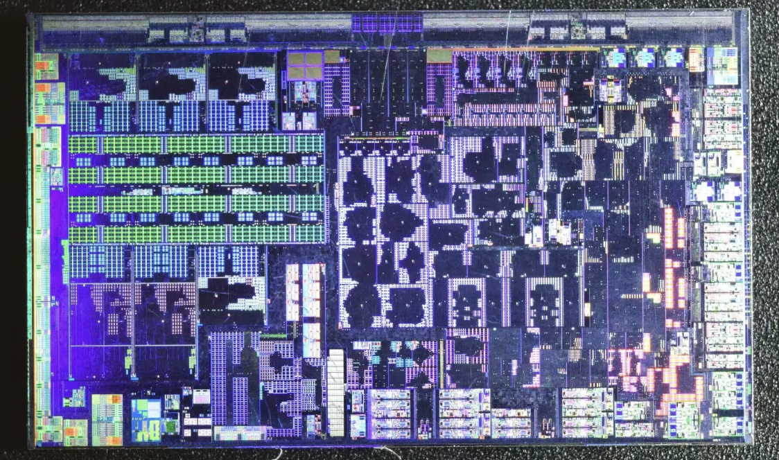 На предполагаемом снимке процессора Phoenix 2 хорошо видны большой кэш L3 (в середине левой стороны, зеленые структуры), два высокопроизводительных ядра Zen 4 (под кэшем L3), четыре меньших ядра Zen 4c (три над L3, одно справа от ядер Zen 2) и большой встроенный GPU (в правой части). Кроме того, на верхней части матрицы расположено несколько PHY-интерфейсов DDR5/LPDDR5, а также PCIe, USB и другие физические интерфейсы на днище APU и на его левой и правой сторонах.