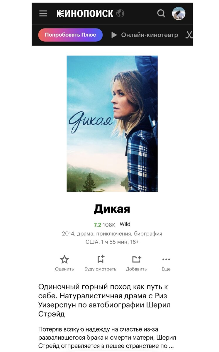 Фильм о принятии себя, прощении и обретении себя. Основан на биографической книге 👏 Невозможно не плакать в финале 😪 Риз Уизерспун - потрясающая😍 Смотрели? Как вам?