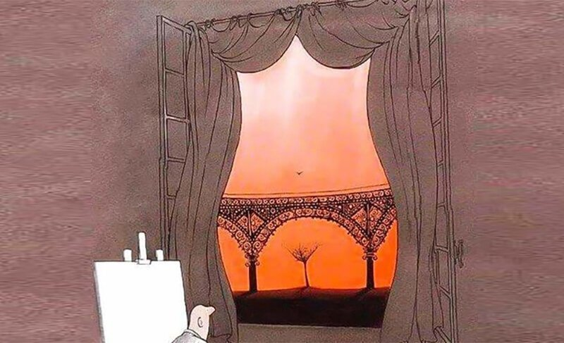 Только иногда это бывает не очень уместным, когда ты видишь совершенно не то что подразумевает собой какой-то объект или фотография. Это может вас поставить вас в неудобное положение. Я покажу вам рисунок, а вы должны запомнить самое первое впечатление от увиденного и подумать почему вы обратили именно на это внимание. Рисунок №1. А что первое увидели вы? На данном рисунке, изображен художник с хостом, который смотрит в свое окно на пейзаж перед тем как нарисовать его.