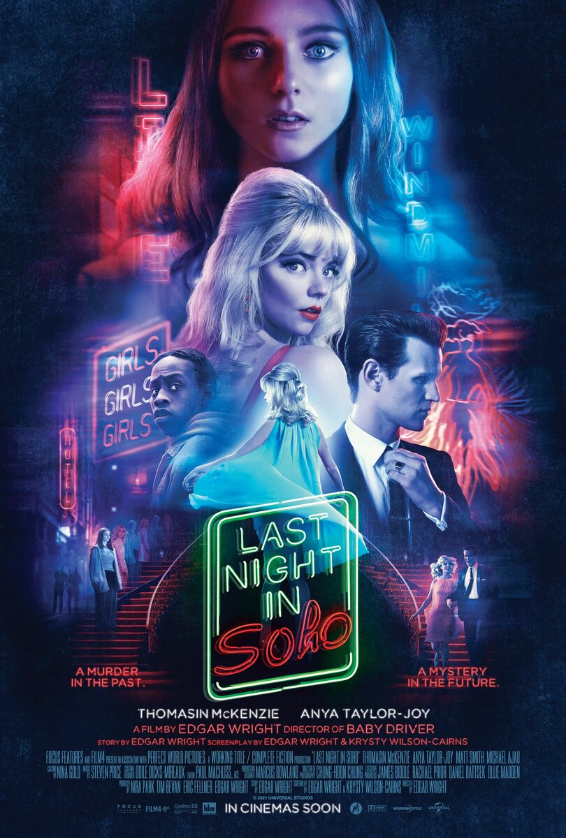 Фильм "Прошлой ночью в Сохо" - это захватывающая и поразительная картина, которая полностью погружает зрителя в мир головокружительной обстановки шестидесятых годов в Лондоне. Обожаю, когда фильмы сочетают в себе различные жанры, и "Прошлой ночью в Сохо" именно такой. Он смешивает в себе драму, триллер, психологический ужастик и романтику, создавая потрясающий коктейль из эмоций. Каждая сцена наполнена таинственностью и неожиданностью, держа зрителя в напряжении и интересе на протяжении всего фильма. Актёрская игра в фильме великолепна. Аня Тейлор-Джой и Томасин Маккензи воссоздают образы двух молодых девушек с разными судьбами, чьи жизни переплетаются волшебным образом. Их химия и харизма просто захватывают дух. Также нельзя не отметить прекрасную работу Мэтта Смита и Теренса Стэмпа, которые придают фильму ещё больше глубины. Стилистика фильма заслуживает особого упоминания. Визуальное оформление, макияж и костюмы дополняют атмосферу девяностых годов, погружая зрителя в эту эпоху и со