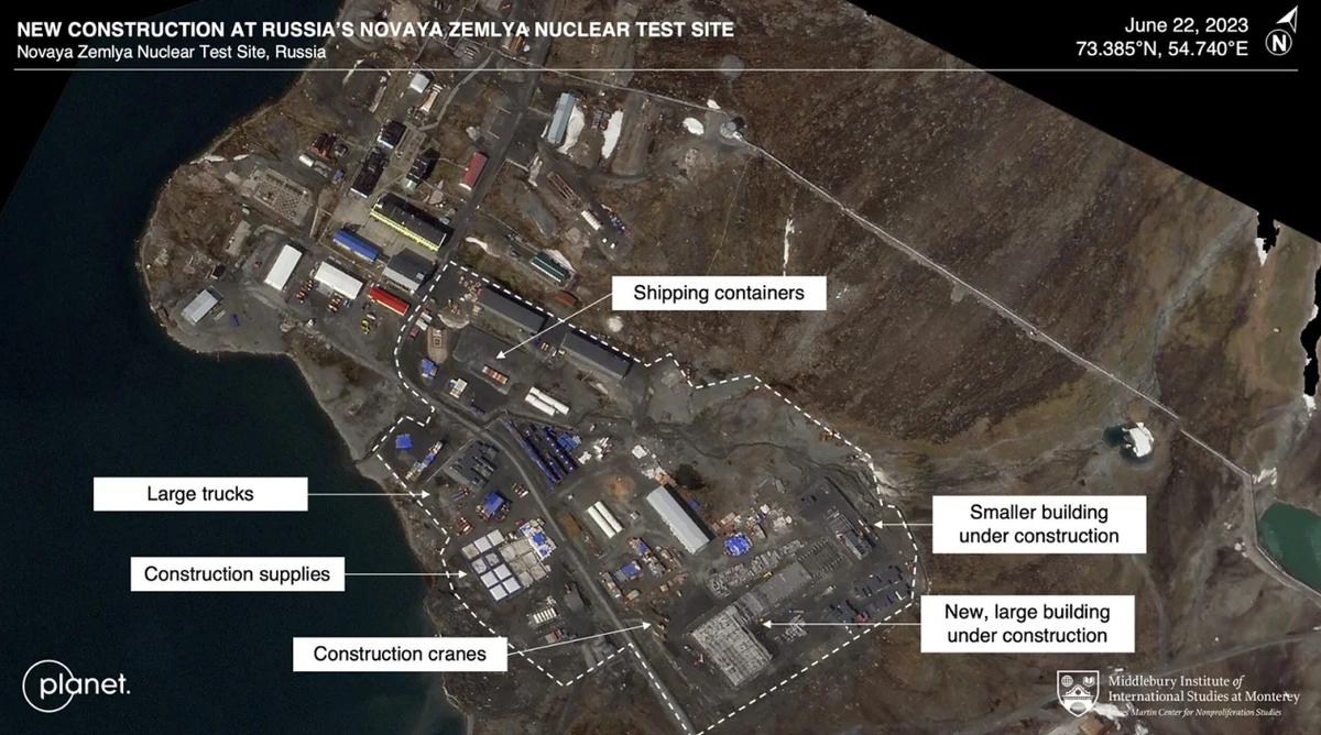 Спутниковые снимки, полученные CNN, показали, что с 2021 по 2023 год на испытательном полигоне на Новой Земле велось масштабное строительство: в его порт прибывали корабли и новые транспортные контейнеры, зимой дороги чистились от снега, а новые туннели были прорыты глубоко в арктических горах.