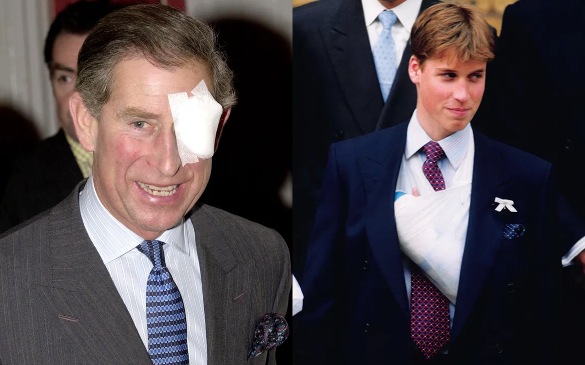 Члены королевской семьи — тоже люди, которые могут попасть в неприятность или получить травму. Иногда им даже приходилось выполнять свои королевские обязанности и выходить в свет после операций или с видимой травмой! Недавно, например, Кейт Миддлтон посещала графство Суррей, и на фото журналистов попала ее забинтованная рука. Травма оказалась несерьезной — принцесса Уэльская объяснила, что поранилась во время игр с детьми, когда они все вместе прыгали на батуте. Вспоминаем другие случаи, когда члены королевской семьи появлялись перед публикой с травмами. Гипс Уилла Принц Уильям сломал палец в 1999 году — и после операции он ходил с перевязкой. Однако это никак не помешало 16-летнему подростку появиться на крестинах греческого принца Константина-Алексиоса, в Лондоне. Повязка на глазу у короля Король Карл III рубил дерево в саду в 2001 году, и в его глаз попали опилки. Он лег в больницу с травмой, а позднее был вынужден скрыть глаз массивной повязкой. Хромой Гарри Герцог Сассекский слом