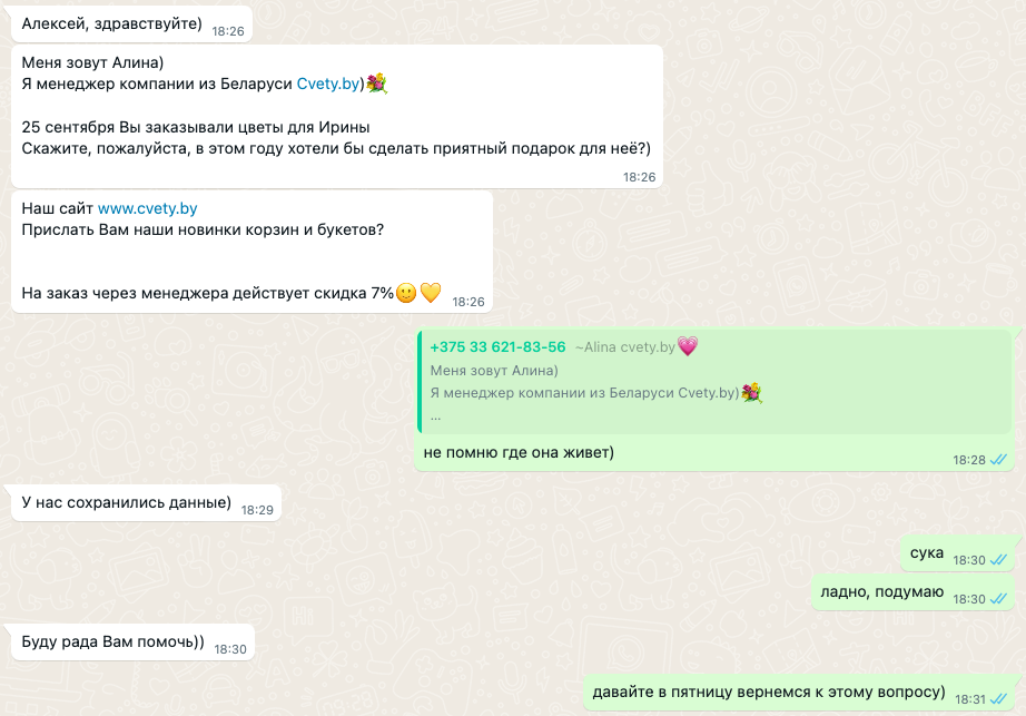 Сколько раз сделали наши цветочники, что-то подобное? Ни разу! Причем в Челябинске, Кургане и Екатеринбурге совершаю покупки-то в одних и тех же лавках. Годами! И ничего подобного они не делают.