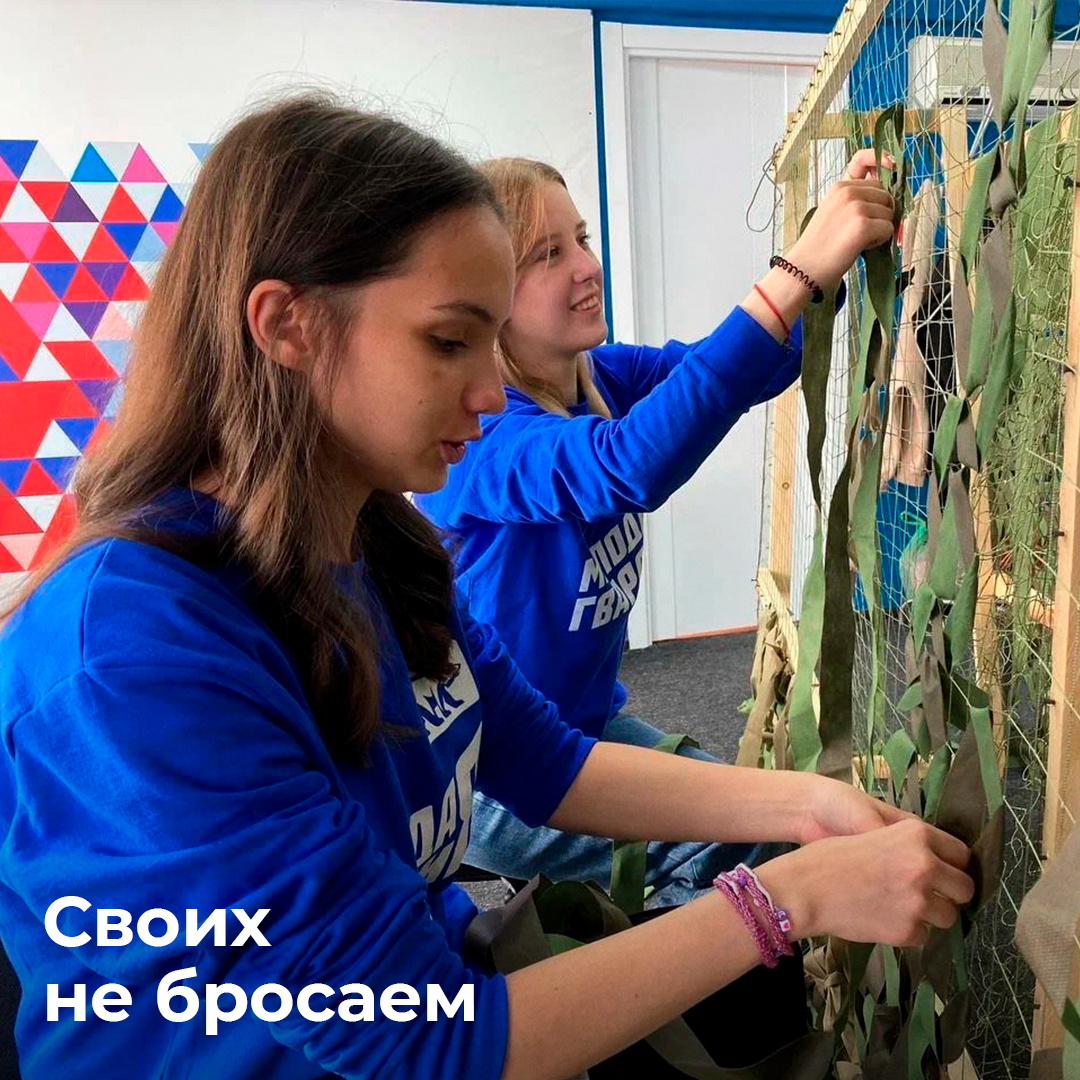 К плетению маскировочных сетей присоединилась вся Удмуртия. Десятки площадок по плетению сетей работают каждый день в республике. Благодаря маскировочным сетям удаётся укрыть важную боевую технику и спасти тысячи жизней отважных защитников Родины. С мая этого года у Молодой Гвардии есть свой центр по плетению маскировочных сетей, который находится в многофункциональном центре по адресу: город Ижевск, ул. Клубная, д. 43. Каждый четверг в центре МГЕР18 проводится мастер-класс. Его проводят активистки Zащита18.