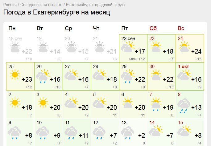 Екатеринбург, 22 сентября — ИА Время Пресс. В Свердловскую область придет потепление до +24 градусов. Об этом говорится в прогнозе синоптиков на предстоящие дни. Как сообщил метеоролог Алексей Пулин, в пятницу, 22 сентября через регион пройдет холодный атмосферный фронт. Поэтому будет пасмурно, возможны небольшие осадки. Ночь на субботу, 23 сентября, будет холодной с заморозками и околонулевыми температурами. А вот днем в Свердловскую область начнет поступать умеренно-теплая воздушная масса по северной периферии антициклона. Из-за этого воздух прогреется до +18. Потепление придет в воскресенье, 24 сентября. В дневные часы столбики термометра поднимутся до отметки в +24, ожидается переменная облачность без осадков. Аналогичная погода простоит в понедельник, 25 сентября, будет солнечно и также без дождей. Во вторник температура воздуха понизится до 16 градусов выше нуля. При этом сайт Gismeteo говорит, что в первую неделю октября жителям Свердловской области стоит ждать потепления до +20