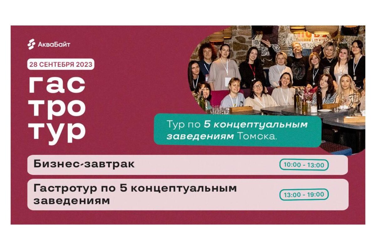 Путешествие в мир гастрономии устроит томичам «Гастротур». Бизнес-завтрак 28 сентября состоится в рестобаре «Капитал» с 10:00 до 13:00. Участники получат новые знания и идеи для развития своего ресторана, насладятся гостеприимством заведений и попробуют вкусные фуд-новинки. Спикеры Екатерина Мазякина, Евгения Веселова и Руслан Ессе поделятся своим опытом в ресторанном бизнесе и расскажут о том, как привлечь и удержать гостя, какие современные тренды существуют в посуде для ресторанов и что предлагают производители оборудования для баров, кафе и магазинов. С 13:00 до 19:00 Гастротур предлагает посетить сразу 5 тематических заведений Томска: Кафе Break me Fast, Гастрономическое бистро Nova, Гастробар The Burger lab, Бар-ресторан СНЕГИРИ, Гриль-бар CRAFT и CLEVER PUB В программе также планируется обзорная экскурсия по Томску. Подробная информация на сайте: gastrotyr.ru/tomsk Реклама ИП Трофимов Максим Анатольевич LjN8KGnfJ