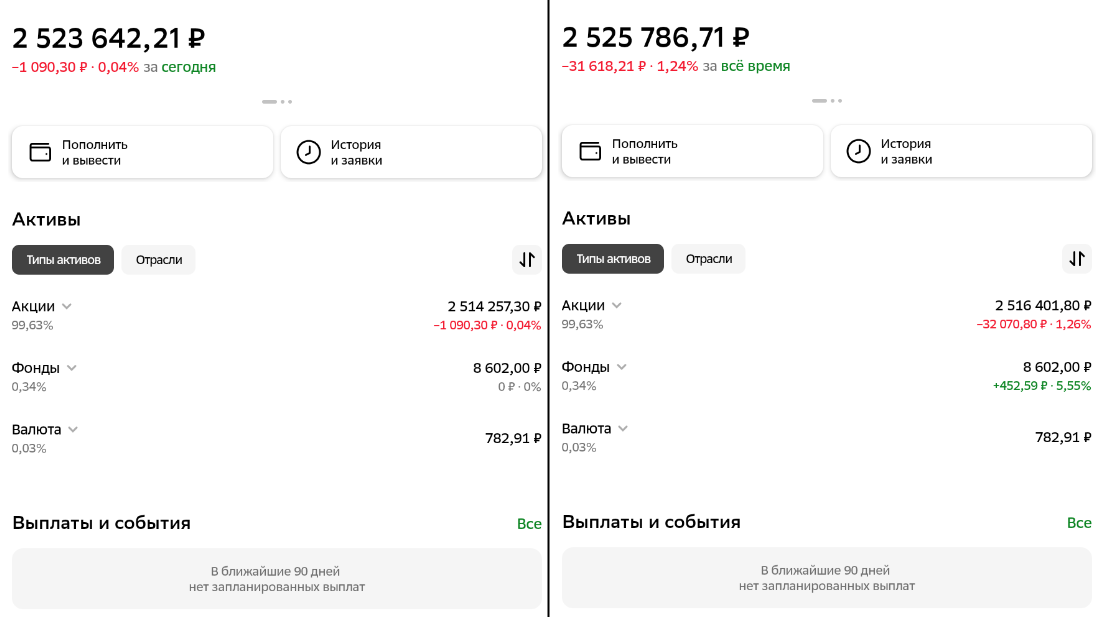 Как вы знаете, наш рынок снижается. Но, у меня по плану в понедельник пополнение брокерского счёта (получаю зарплату) и покупка дивидендных акций нашего фондового рынка, поэтому сегодня буду анализировать компании и выбирать акции для инвестирования. Не смотря на падение котировок индекса МосБиржи и прибыли моего портфеля, я продолжу следовать свой стратегии, которая заключается в покупке дивидендных акций через равные промежутки времени (усреднение). Мой портфель На скрине видно, что мой портфель в убытке как за сегодняшний день, так и за все время моей инвестиционной деятельности (это без учёта реинвестированных дивидендов). Если смотреть на прибыль портфеля с учётом полученных дивидендов, то она есть: Напомню, что я инвестирую с февраля 2020 года, т.е. 3 года и 7 месяцев! По составу портфель выглядит так: Во что буду инвестировать? Я использую дивидендную стратегию, значит мне нужны акции с высокими и стабильными дивидендами. Для начала, посмотрим на те компании, которые уже заяв