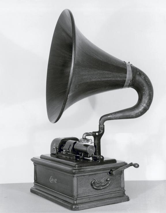 Это фонограф не простой, а концертный. В 1899 году Томас Эдисон впервые представил "концертный" фонограф, чтобы повысить уровень громкости, достигаемый обычным аппаратом. Дело в том, что цилиндры на подобных фонографах были больше стандартных, их диаметр составлял 5 дюймов, в то время как обычные были около 2. Однако с появлением пластинок проблема с громкостью была решена, и необходимость в концертных фонографах отпала. #домвинтажноймузыки #музейаудиоаппаратуры #чудотехники