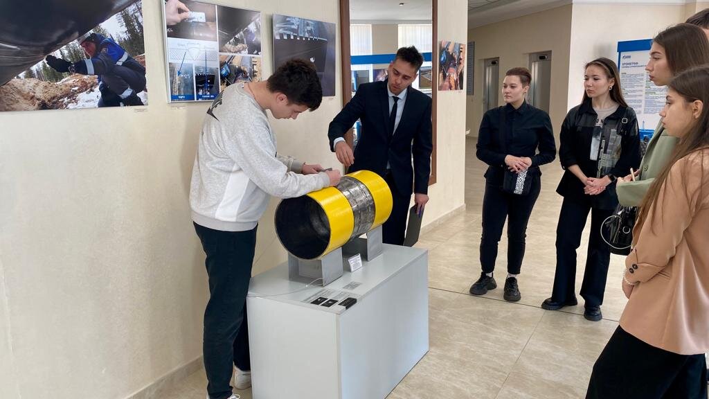 На выставке обучающиеся познакомились с системой строительного контроля. Студенты проявили большой интерес к измерительным приборам, например, теодолиту, который определяет на объекте точность координат и высот различных точек. Экскурсанты измеряли рост одногруппников с помощью нивелирной рейки; на макете трубы проводили контроль сварных швов – это необходимая о