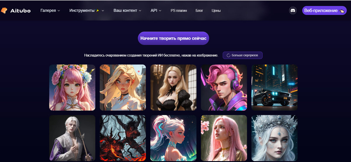 Aitubo открывает перед вами мир творчества с помощью искусственного интеллекта. Независимо от вашего уровня навыков, вы можете создавать удивительные изображения, мультфильмы и игровые ресурсы с легкостью. Присоединяйтесь к сообществу творческих людей, которые уже воспользовались преимуществами этого инновационного инструмента. Однозначно, рекомендую с использованию.