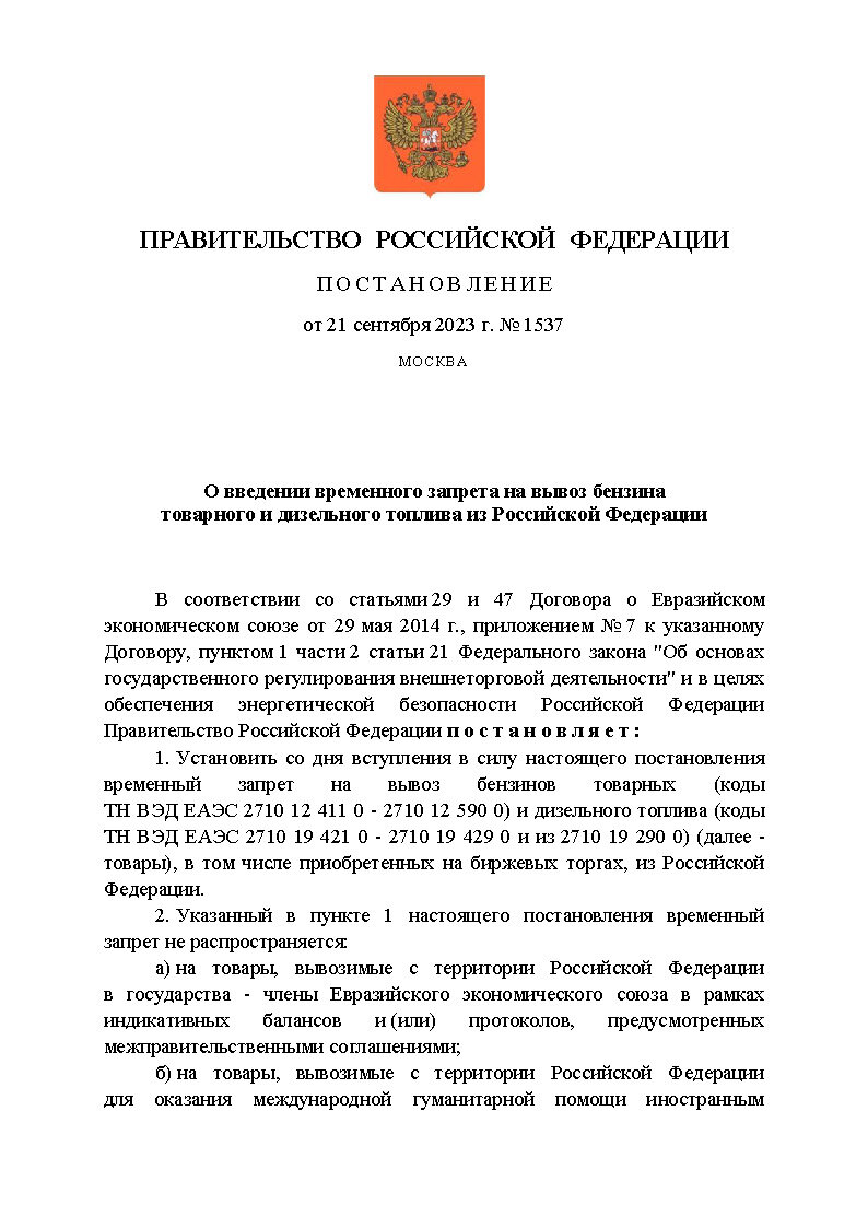 После часа Правительства в Госдуме принято постановление о введении в России временных ограничений на экспорт автомобильного бензина и дизельного топлива. Предполагается, что это поможет насытить рынок топлива, что в свою очередь позволит снизить цены для потребителей на внутреннем рынке.