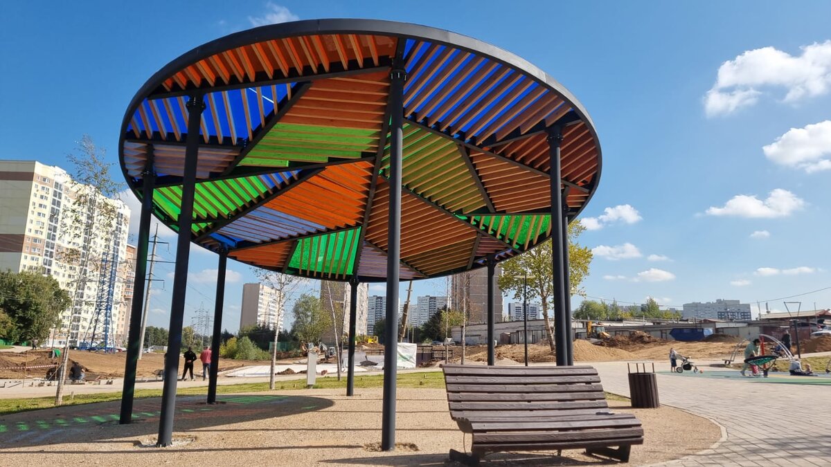 Делимся свежими новостями – на установили навес-перголу в парке «Союзный» города Одинцово. Модель была разработана по индивидуальному эскизу, с использованием яркого абстрактного орнамента. Со временем, конструкцию легко можно доукомлетовать качелями или скамьями, создав под ним место, где горожане смогут отдыхать при любой погоде, ведь навес защищает как от дождя, так и яркого солнца. В нашем каталоге есть другие готовые комбинации с яркими акцентами, например, Навес-Пергола МН-20.21 отлично подходит для двора многоквартирного дома, территории детского сада, школы и даже базы отдыха. Навес-Пергола МН-21.7 сочетает в себе сразу несколько функций: велопарковку и место для отдыха со скамейками и качелями, благодаря чему прекрасно подойдет для любого общественного пространства. Навес-Пергола МН-20.55 – отличная идея для пляжа, подобную модель можно оснастить зарядной станцией, тем самым сделав ее еще более функциональной.
