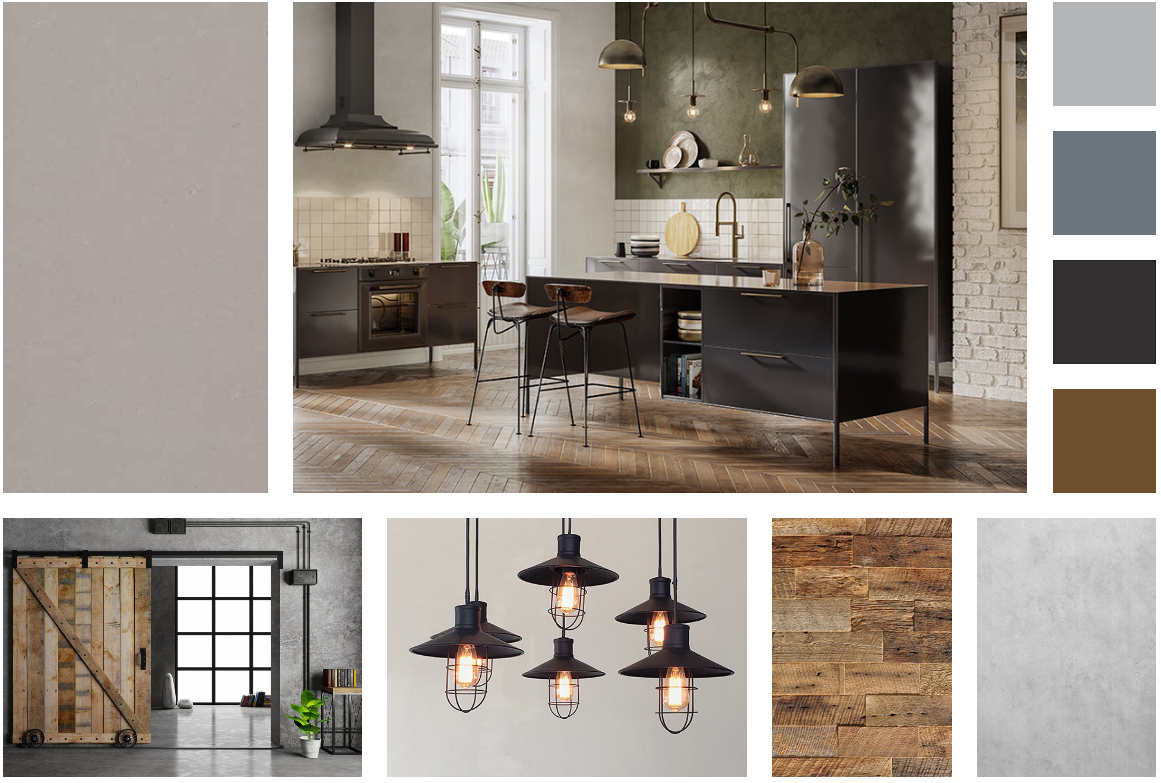 Взяв за основу стиль старых фабрик и промышленных помещений, конструктивные элементы, такие как опорные балки и колонны, становятся фокусными точками, которые объединяют все вокруг в единое пространство. Типичные цвета Типичная индустриальная цветовая палитра богата необработанными тонами коричневого, черного, бетона, белого и градиентными оттенками серого, к