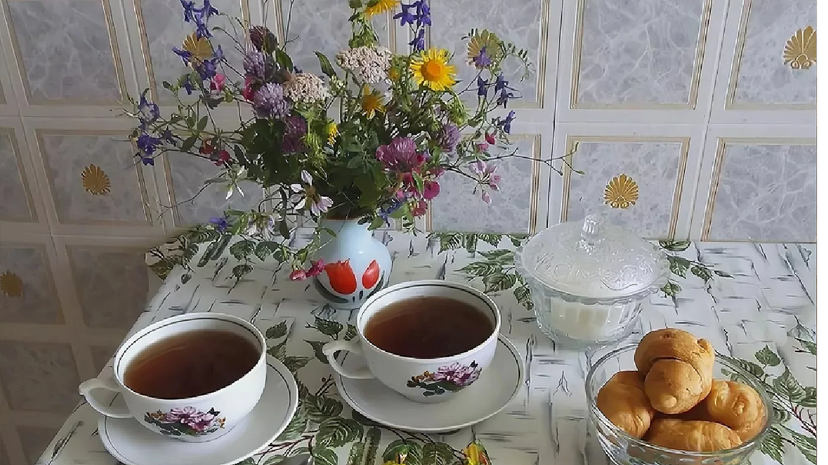 На столе стоял букетик полевых цветов.