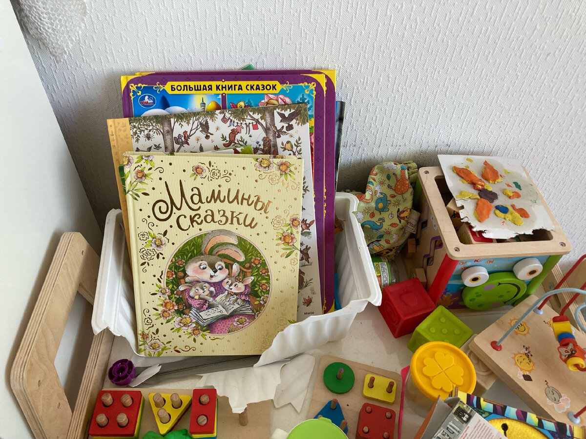 Вот фото "до". Не знаю, каким образом, но ребенок буквально на щепки разобрал пластиковый контейнер для цветов. Все наши книги влезли бы на одну полку. У нас просто много тонких, бумажных. Пока расставила их по всем полкам, чтобы это выглядело красиво, а не так, чтобы в одном месте было густо, а в другом — пусто. В любом случае, полка очень вместительная и еще влезет много книг. Согласно моим планам, в этом уголке для дочери будет "рабочий" уголок. Внизу стоит растущий столик и стульчик. Дочка сама сможет доставать книжки с нижней полки. Покупала вот тут. Обор детской мини-библиотеки ⬇ Как-то я уже писала, что ребенок не признает нагрудники. Зато она подружилась с фартуками. Один я купила на Яндекс.Маркете, но нам его мало. Сразу же заказала втор