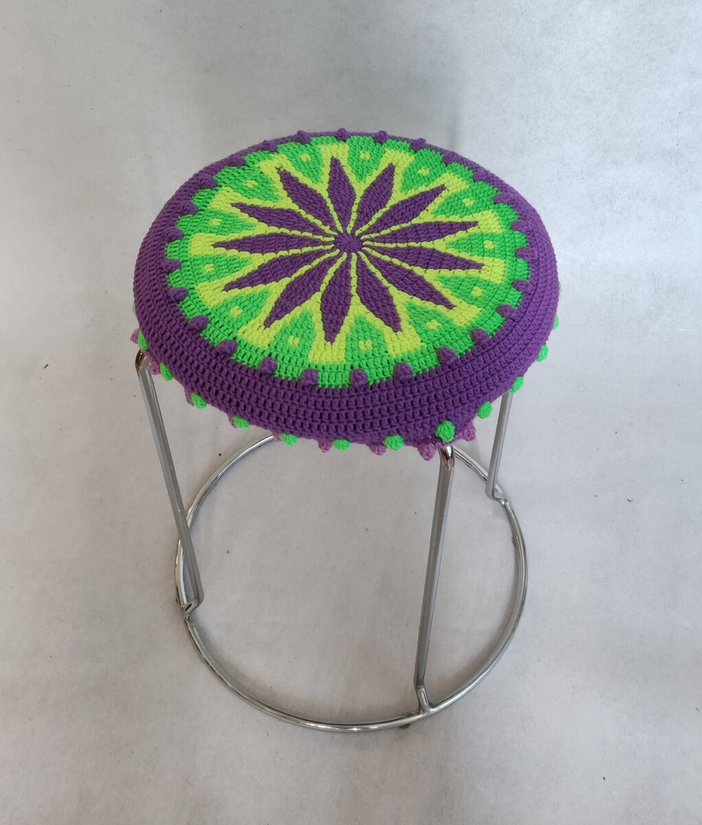Заключительный ряд провязала бледно-сиреневой пряжей, потому что сиреневая закончилась. Но смотрится неплохо. Чехол готов!