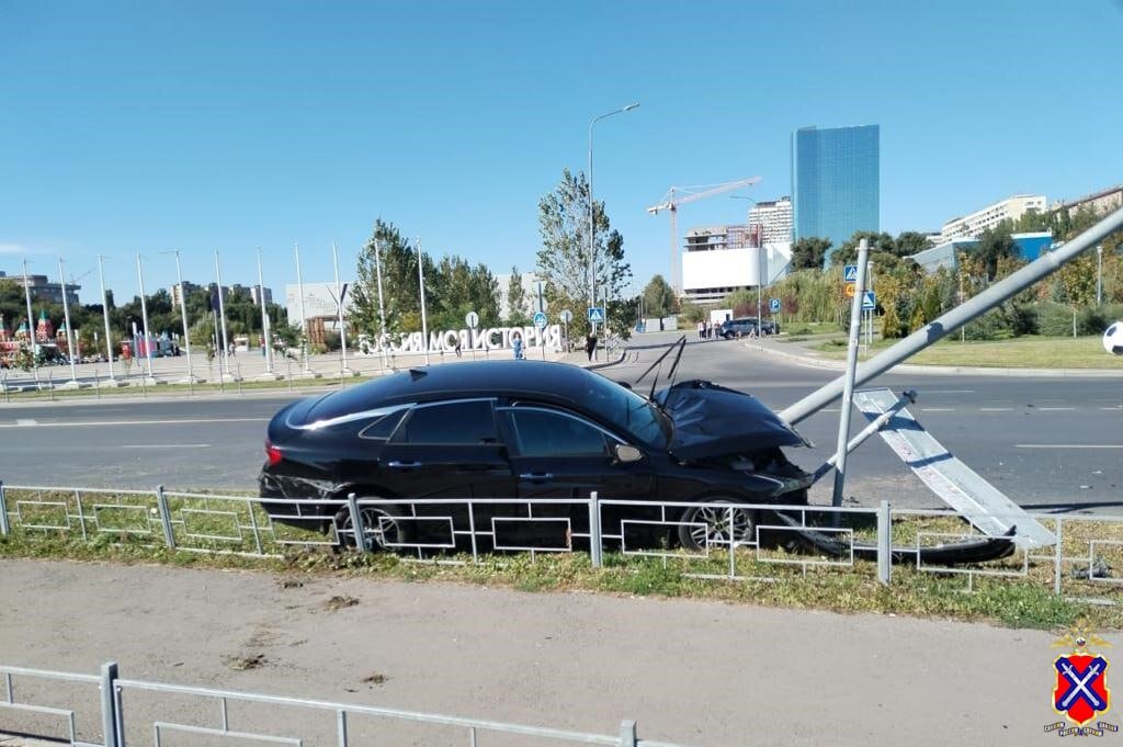 Kia повалила столб на «нулевке» в Волгограде: осколки засыпали всю дорогу