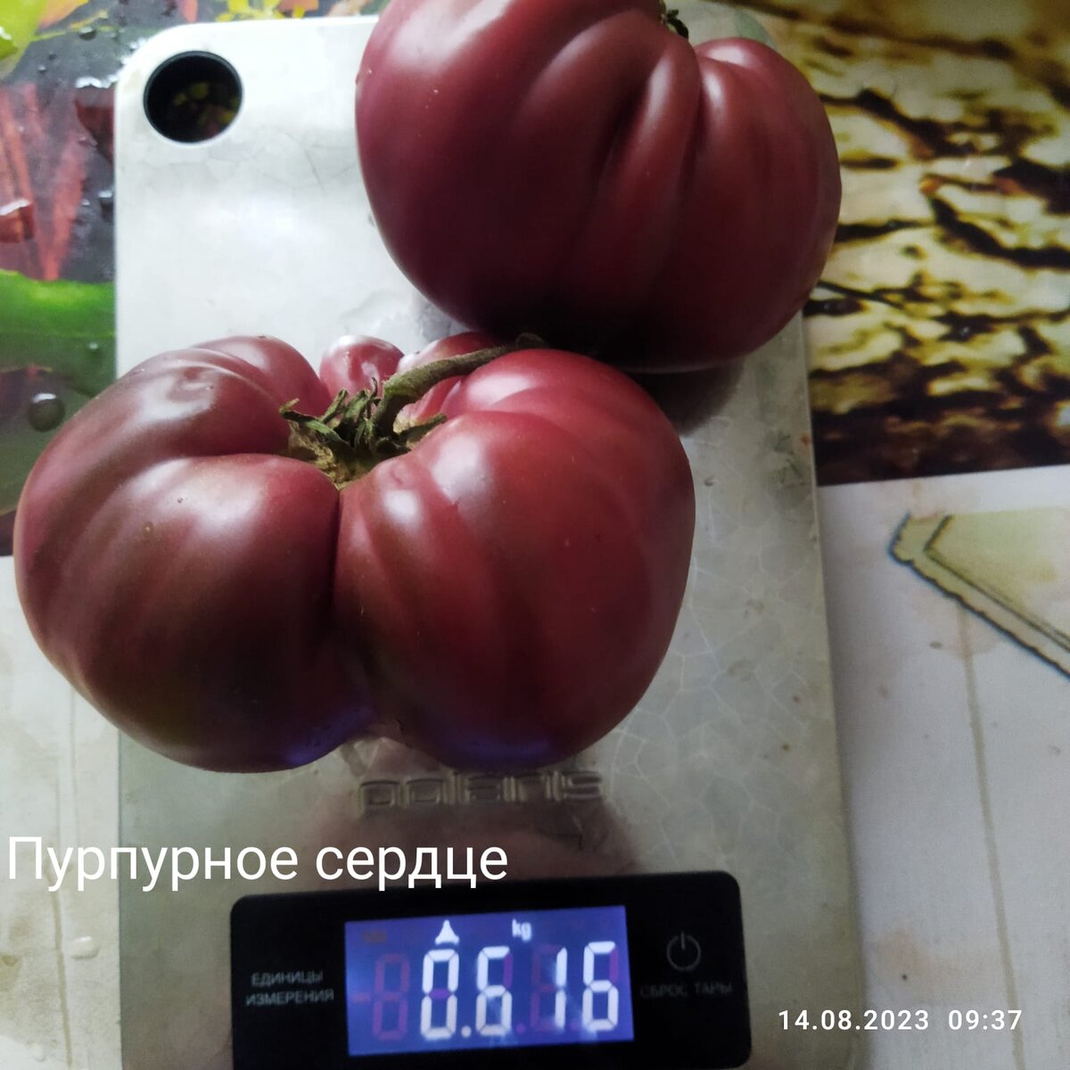 Показываю фото поспевших помидоров обоих сортов. И рассуждаю о возможном переопылении в прошлом году гнома Мулат. Всем читателям - здравствуйте! В прошлом году росли у меня и Фиолетовое сердце и Пурпурное. Семена из одного источника. То есть сорта разные. Но "в природе" существует только один сорт - Dwarf Purple Heart. Ссылка на него есть в официальном списке создателя проекта Томатный гном. И если перевести Purple на русский, получится Фиолетовый. Рассуждала об этом здесь. Вид кустов обоих сортов одинаковый - высота см 60, лист морщинистый, ствол крепкий. Сейчас нашла хорошие фото поспевших в 2023 году помидорок этих сортов Первым поспел Пурпурное сердце Фиолетовое сердце Куст Пурпурного сердца такой же, гномистый. Помидорок, правда меньше. На мой слишком требовательный и склонный к сладости вкус, вкуснее Пурпурное сердце. В списке Крейга ЛеУлье - Dwarf Purple Heart - как у меня гном Фиолетовое сердце. Есть подозрение, что гном сначала был Фиолетовым сердцем, потом переопылился с кем