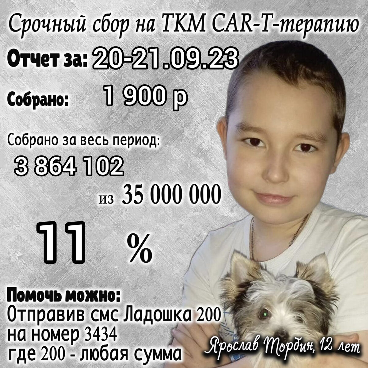 Дорогие друзья! Отчет за 20-21.09.23 по срочному сбору для Ярослава Торбина, которому требуется CAR-T терапия, трансплантация костного мозга. Поступило средств: 1 900 р. Всего собрано: 3 864 102 р. Мы говорим всем вам огромное человеческое СПАСИБО! Желание помочь ближнему - это великий дар, который есть у человечества. Спасибо вам! Помочь можно: ✅ смс Ладошка 200 на номер 3434, где 200 - любая сумма; ✅ на сайте фонда любым удобным способом. https://starforsma.ru/children/yaroslav-torbin ✅ Присоединиться к команде волонтеров фонда, помогающих Ярославу Торбину https://t.me/+lvXwhE7_nQ0xYzgy ✅ Принять участие в благотворительной лотерее в наших социальных сетях. #торбин_ярослав #срочныйсбор #звезданаладошке #волонтерызвезданаладошке