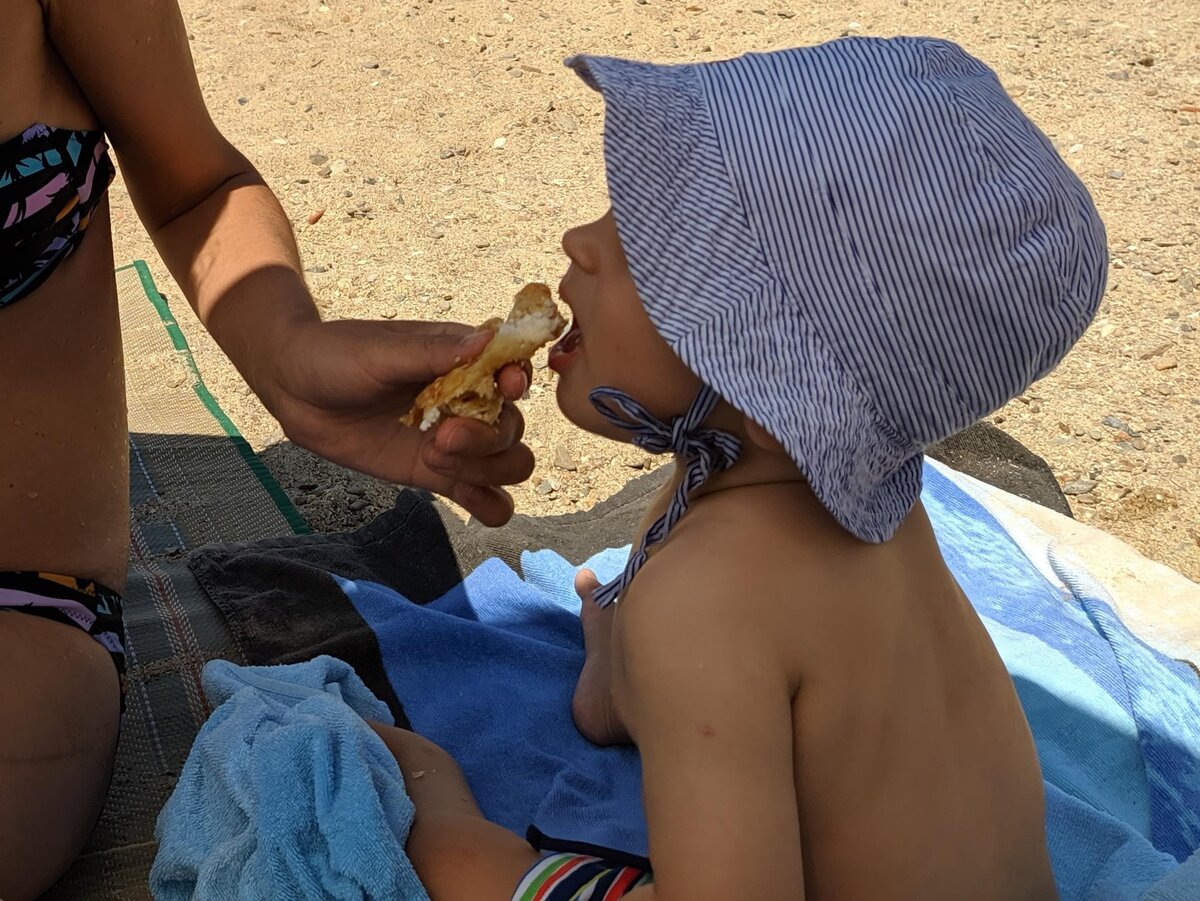 Когда он был помладше, иногда всё-таки ел сам. Есть видео, где он ест кашу, творожок, вареники сам. Но потом что-то пошло не так. Возможно, сыграла ревность после рождения дочери. Сам он сейчас ест только что-то очень для него вкусное. Так что навык-то ест, проблема в мотивации.